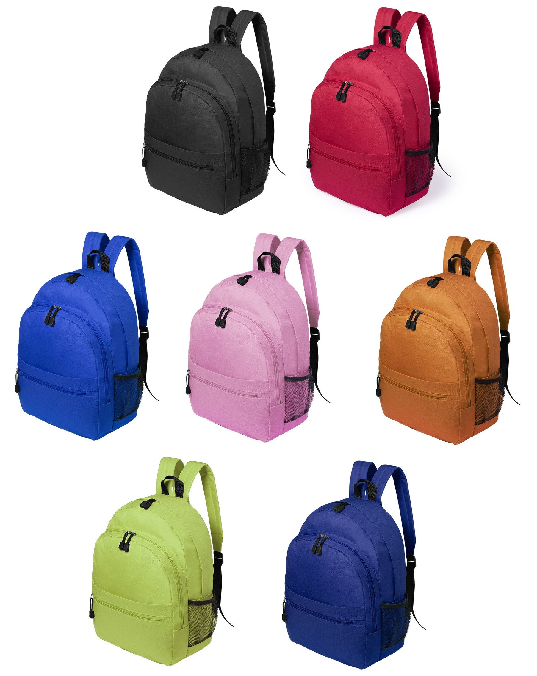 Two main compartments with zipper closure and front pocket.
